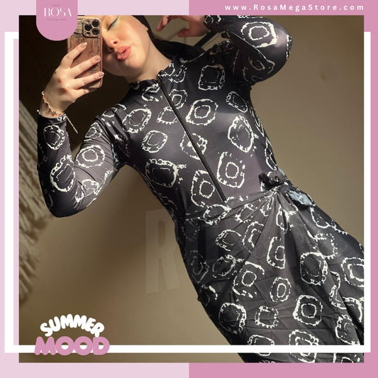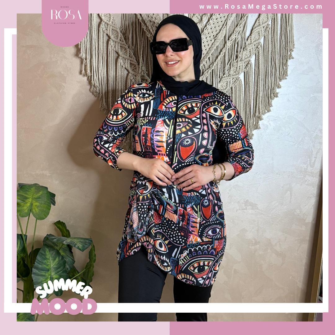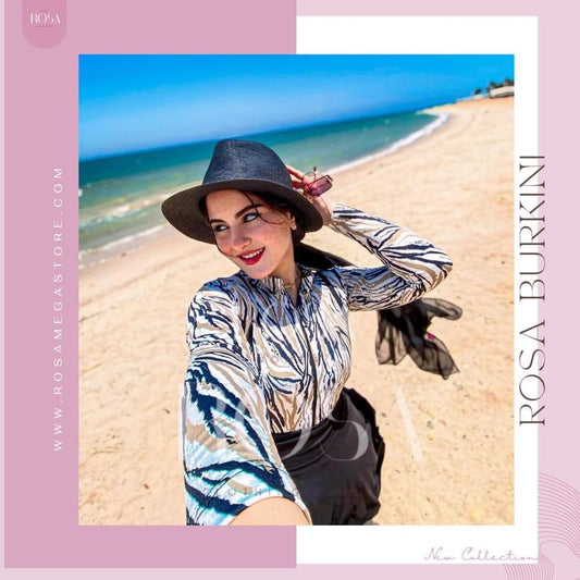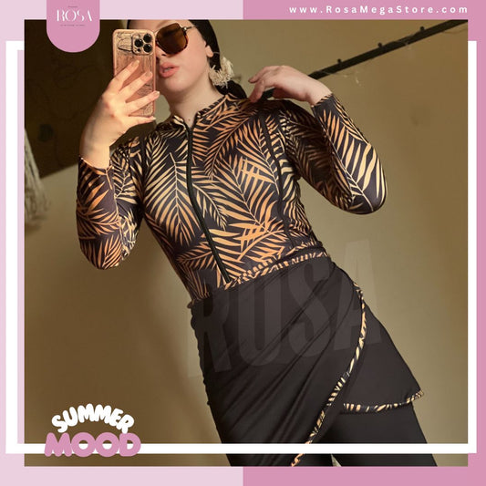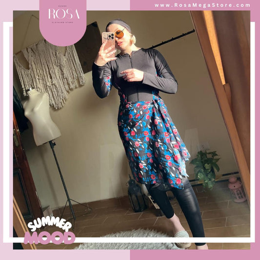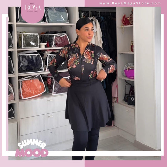 بوركيني اسود في ورد صباع