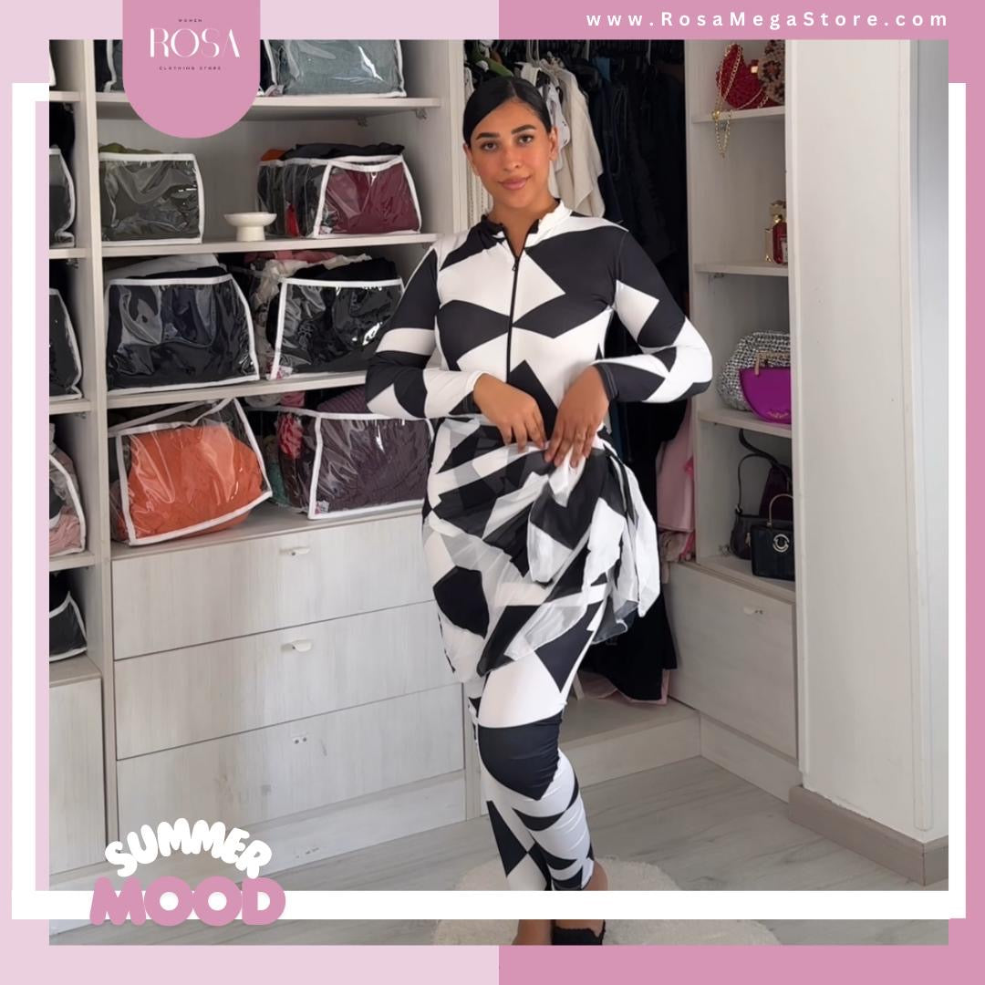 البوركيني ثلاث قطع (جامبسوت مطبوع بالكامل،كاش شيفون.بونيه)
