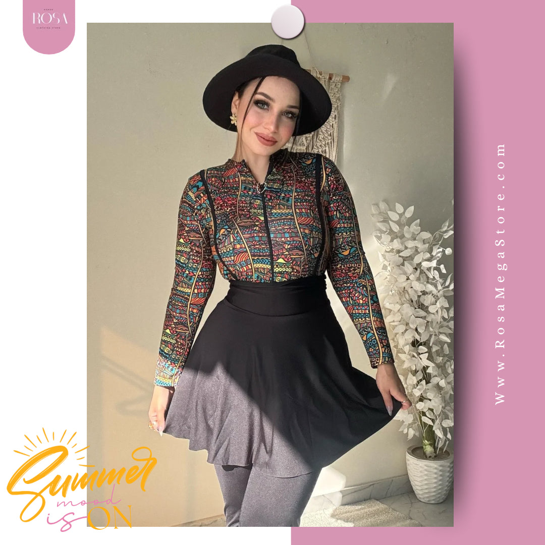 بوركيني ثلاث قطع ( جامبسوت و جيب وبونيه)